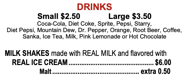 All dinners and sandwiches can be prepared for take-out.