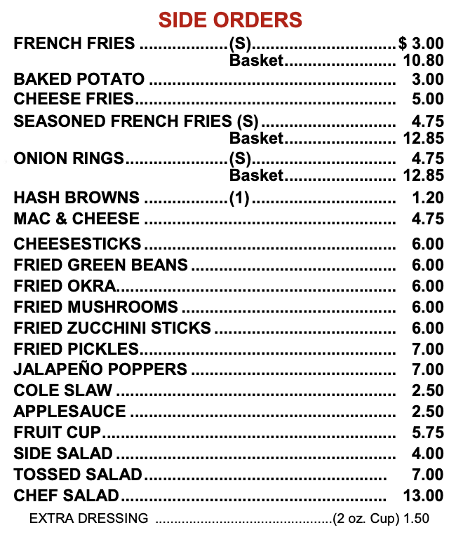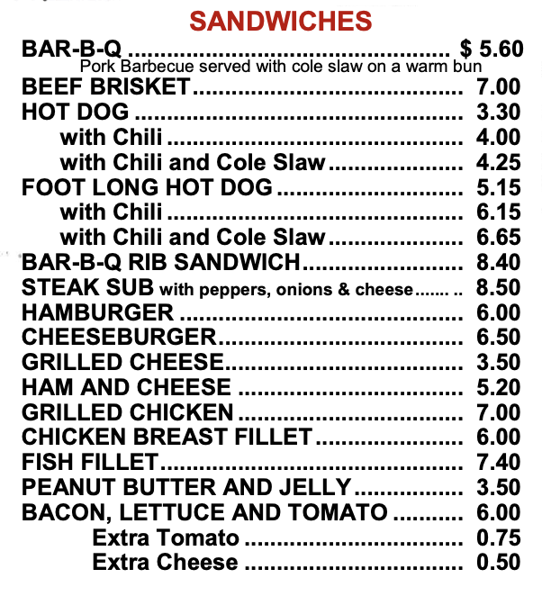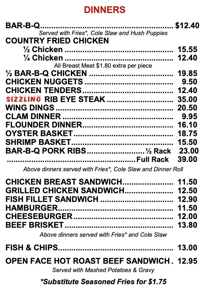 In addition to pork barbecue, we offer a full menu.