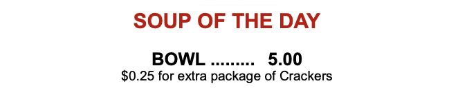 All dinners and sandwiches can be prepared for take-out.